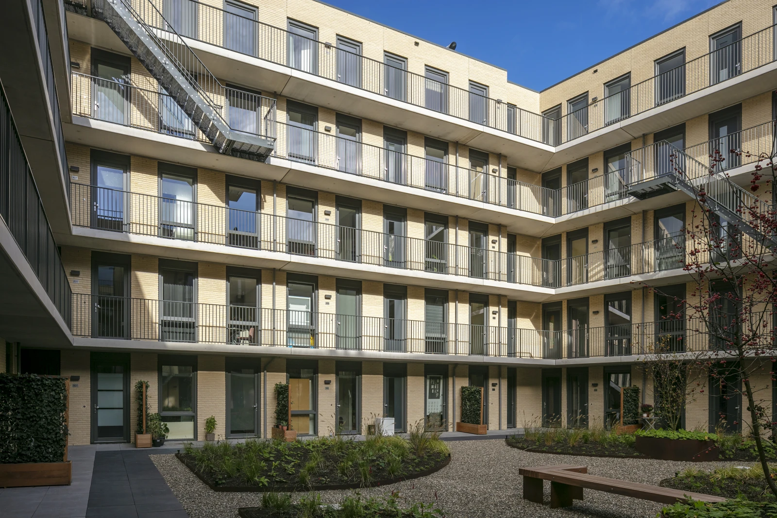 Collectieve binnentuin voor ontmoeting en ontsluiting van de appartementen.