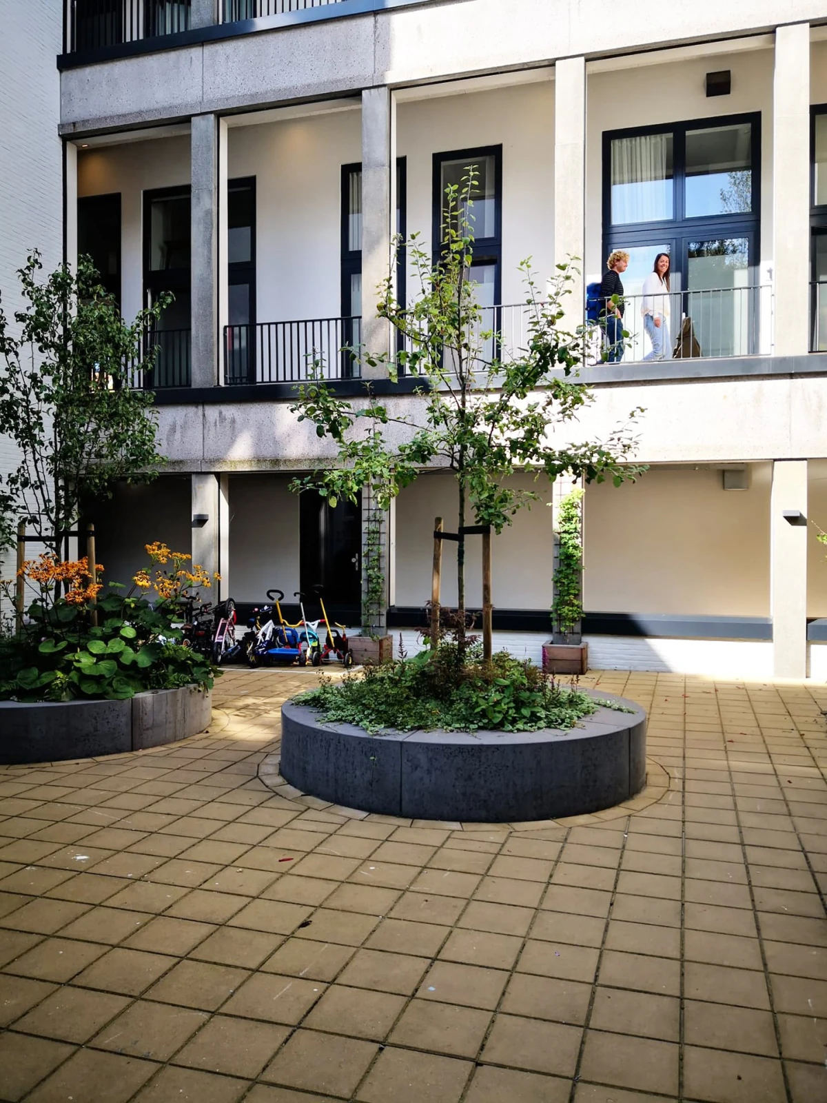OPEN herontwikkelde de monumentale trappenhuizen, grote klaslokalen en ateliers tot 26 uiteenlopende appartementen (van krap 50 tot ruim 200 m2) en een inpandige parkeergarage. Bijzonder is dat de nieuwe bewoners inspraak kregen in aanpak en invulling. De hoge ruimtes met grote ramen waren voor hen het ideale canvas om casco hun woonwensen te realiseren. Met de beschikbare vrije hoogte kregen de meeste appartementen een entresol. De nieuwe bewoners waren vooral gezinnen, met collectiviteit als wezenlijke waarde. Gezamenlijke voorzieningen zijn de binnenplaats met siergroen, een multifunctionele ruimte en een gerieflijk logiesverblijf. De Vereniging van Eigenaren bezit en beheert de duurzame installatie voor warmte- en koude- opwekking.